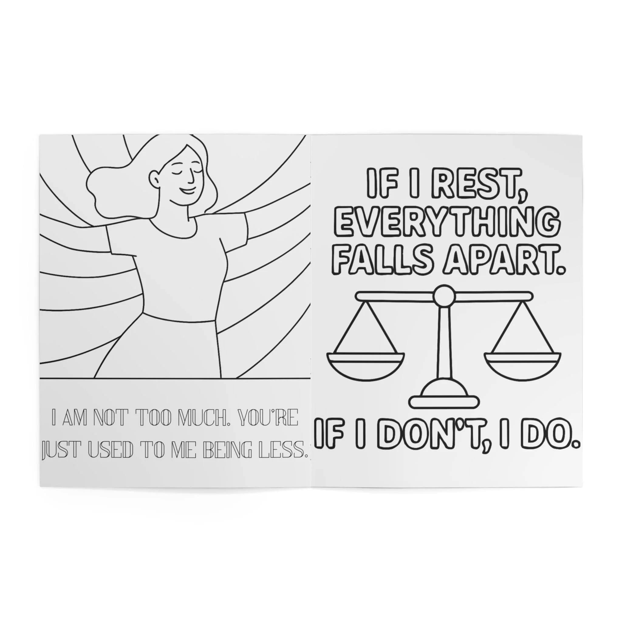 Whether you’re coloring to calm your nervous system, laugh at the absurdity, or just have a moment to yourself, this book meets you exactly where you are.